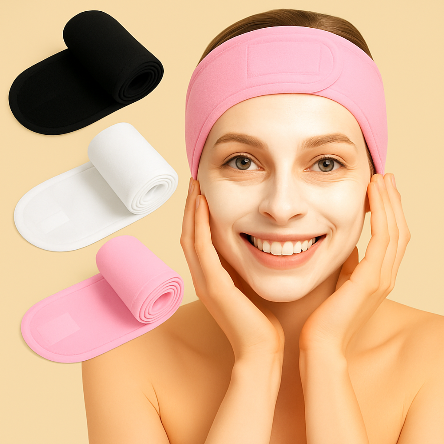 Profitez d'un soin du visage optimal avec notre bandeau cosmétique large et ajustable, parfait pour vos routines de maquillage, nettoyage du visage, ou même pendant vos moments de relaxation au spa ou à la maison. Conçu pour s’adapter à toutes les tailles de tête, ce bandeau doux et absorbant maintient vos cheveux en place, vous offrant un confort absolu tout au long de votre soin.